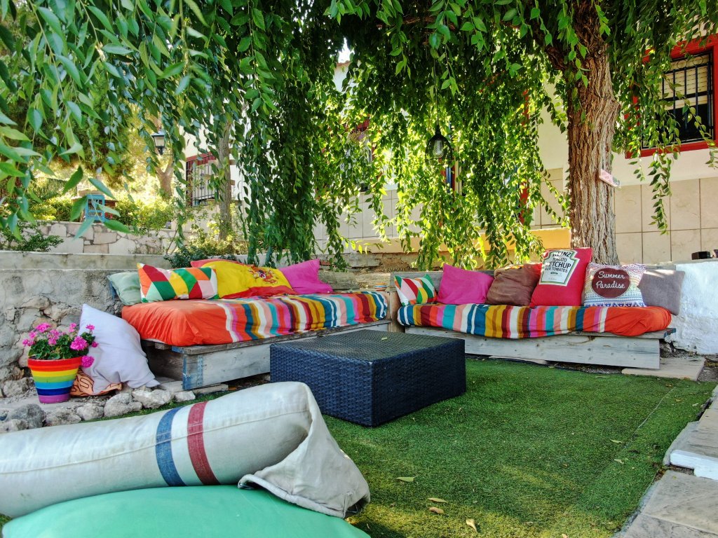 Maar naast het labyrint is er ook een prachtig aangelegde mediterrane tuin aanwezig, met prachtige bomen, struiken en bloeiende planten. Wat een leuke wandeling is en waar je prachtige foto’s kunt schieten. Mocht je nou geen zin hebben om van alles mee te slepen en zelf te gaan BBQ-en, geen stress er is ook een kiosk aanwezig. Waar men koele drankjes, ijsjes, snacks en homemade paella verkopen. Dus na een kleine tussenstop bij deze kiosk vervolgden wij onze weg weer, en besloten we Onil wat verder te verkennen. En wat stuitten wij daar op een bijzonder rariteitenkabinet. Een bar met de naam Por Fin, half buiten, half binnen met de meest bijzondere meubels die je maar bij elkaar kunt verzinnen. En de aankleding was niet het enige wat bijzonder was, ook de uitbater was een bijzonder figuur net als zijn klantenkring en muziek keuze. Wij hadden een mooi plekje gezocht aan een kleine bartafel met twee krukken en hadden zo goed zicht op alle mensen die het etablissement betraden en verlieten. Het is zeker een plek om nog eens te bezoeken, ga jij met ons mee dan?