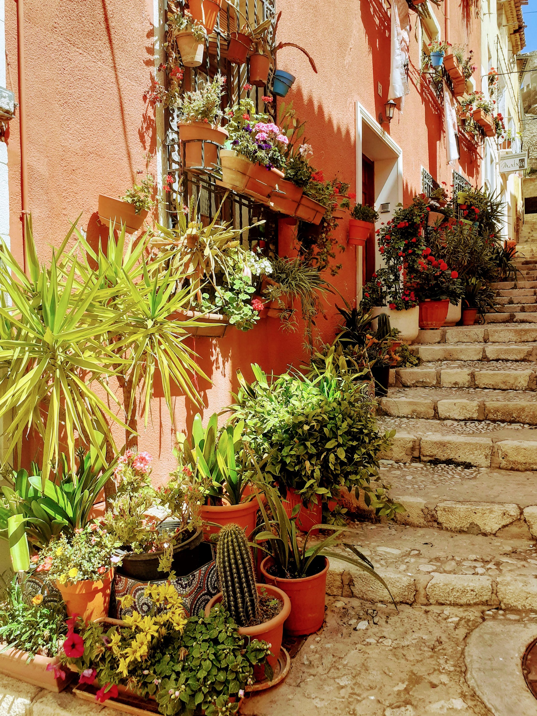 Wat dacht je van het kasteel dat ver boven het dorp uittorent onderdeel uitmaakt van de bekende kastelenroute in de omgeving. En er ’s avonds prachtig verlicht bij staat en al van ver is te zien. Zelfs vanaf ons heerlijke stekkie heb je perfect zicht op het verlichte kasteel. Overdag is de poort aan de achterzijde open, je kan te voet omhoog richting het kasteel. Je kunt het kasteel vanaf de buitenzijde bewonderen, naar binnen kan je helaas niet dat kan alleen op speciale dagen. Maar vanaf het kasteel kan je via de andere zijde via de trap naar beneden en kom je zo in het oudste deel van Sax uit. Daar kan je heerlijk struinen door de smalle straatjes met oude huisjes oude mannetjes en vrouwtjes die voor de deur zitten te kletsen met elkaar. Loop heerlijk door de smalle straatjes, trappetjes om zo af te dalen richting plaza cervantes waar je dan lekker neerstrijkt op een van de terrassen die je daaraan treft. Zo kan je genieten van heerlijke koffie bij Dulcinea, een lekker biertje bij El Toro of houd je meer van kleine hapjes met een wijntje of biertje? Neem dan plaats bij het kleine zaakje Casa Vieja en laat je verrassen.