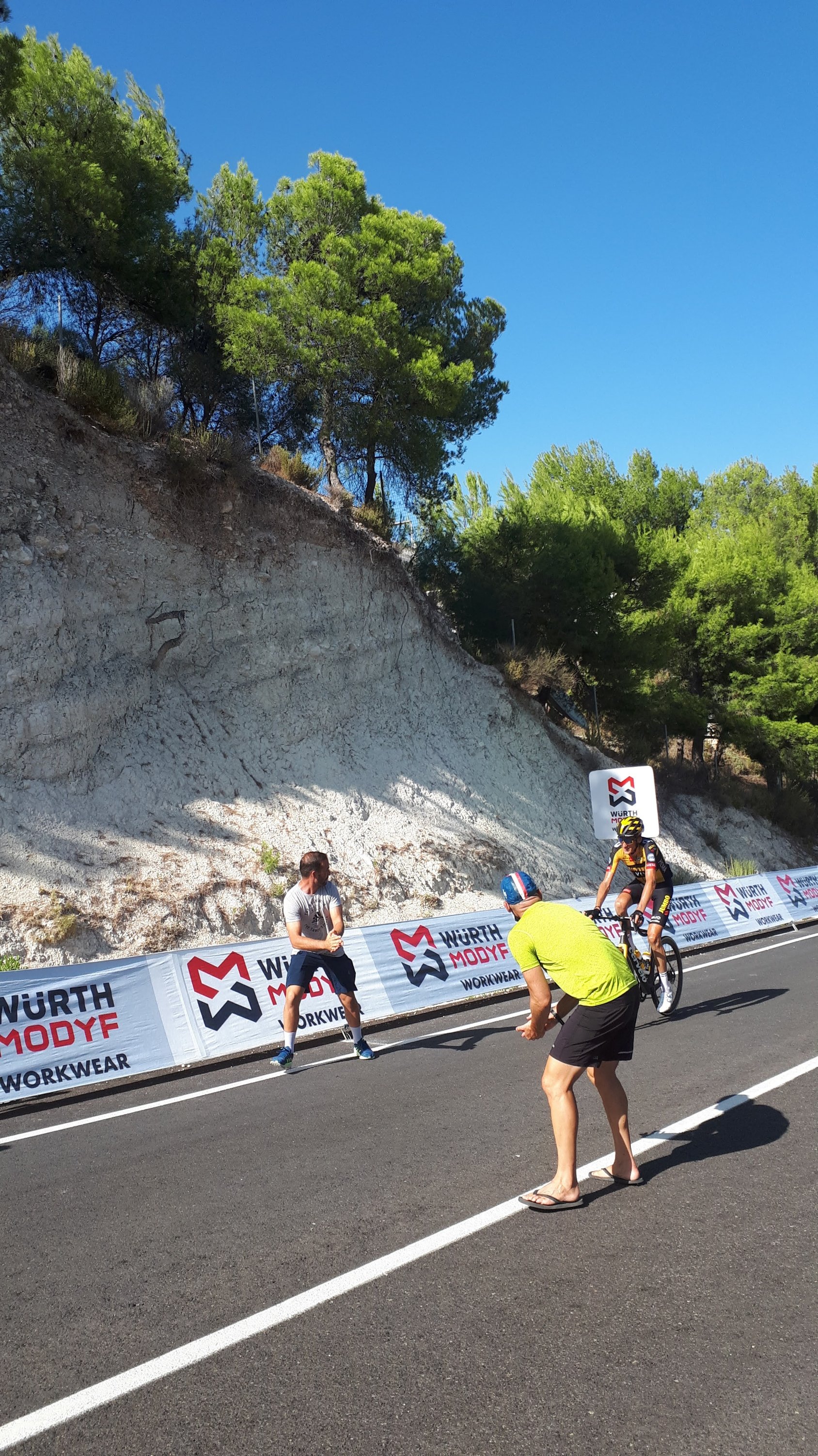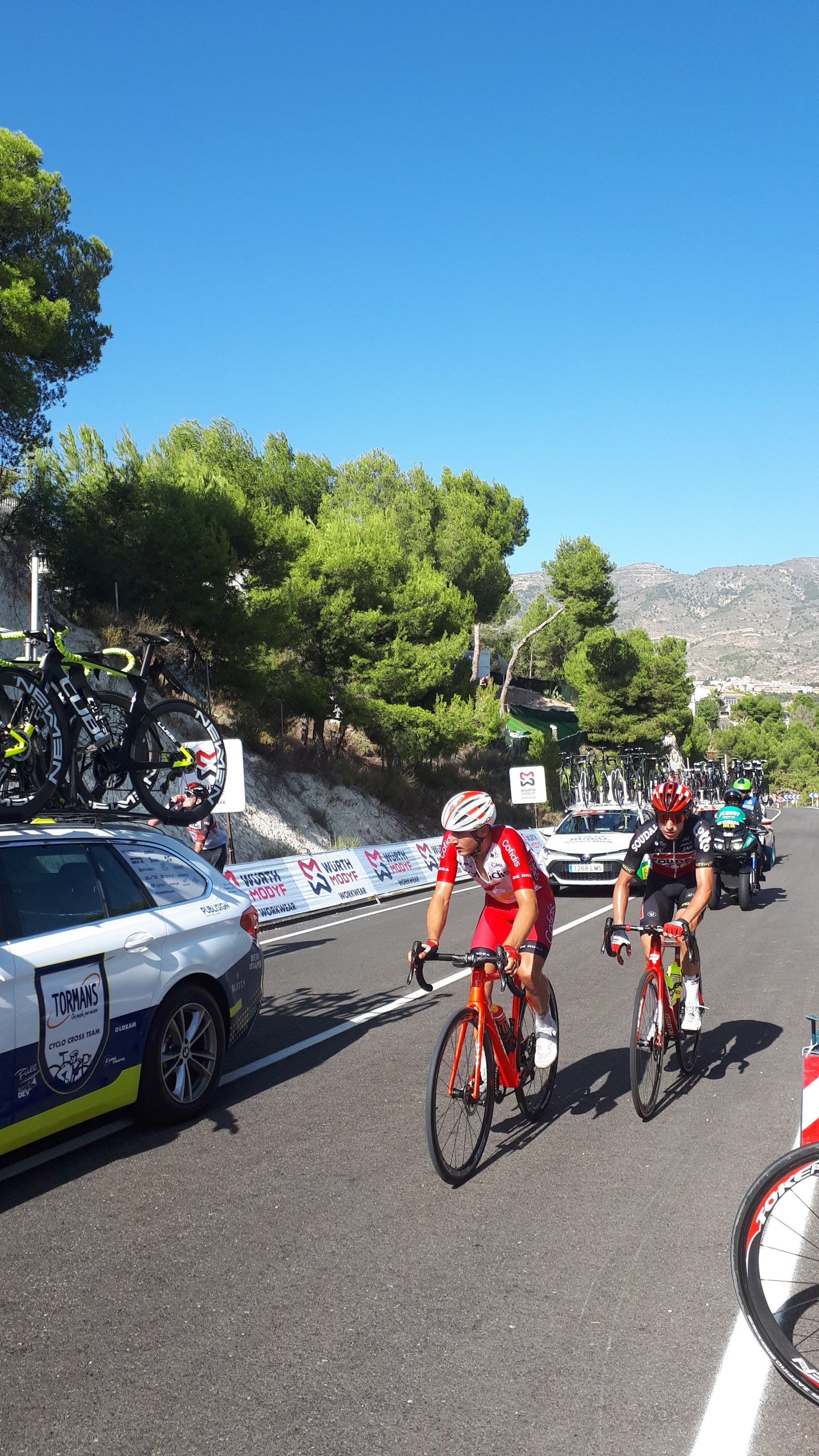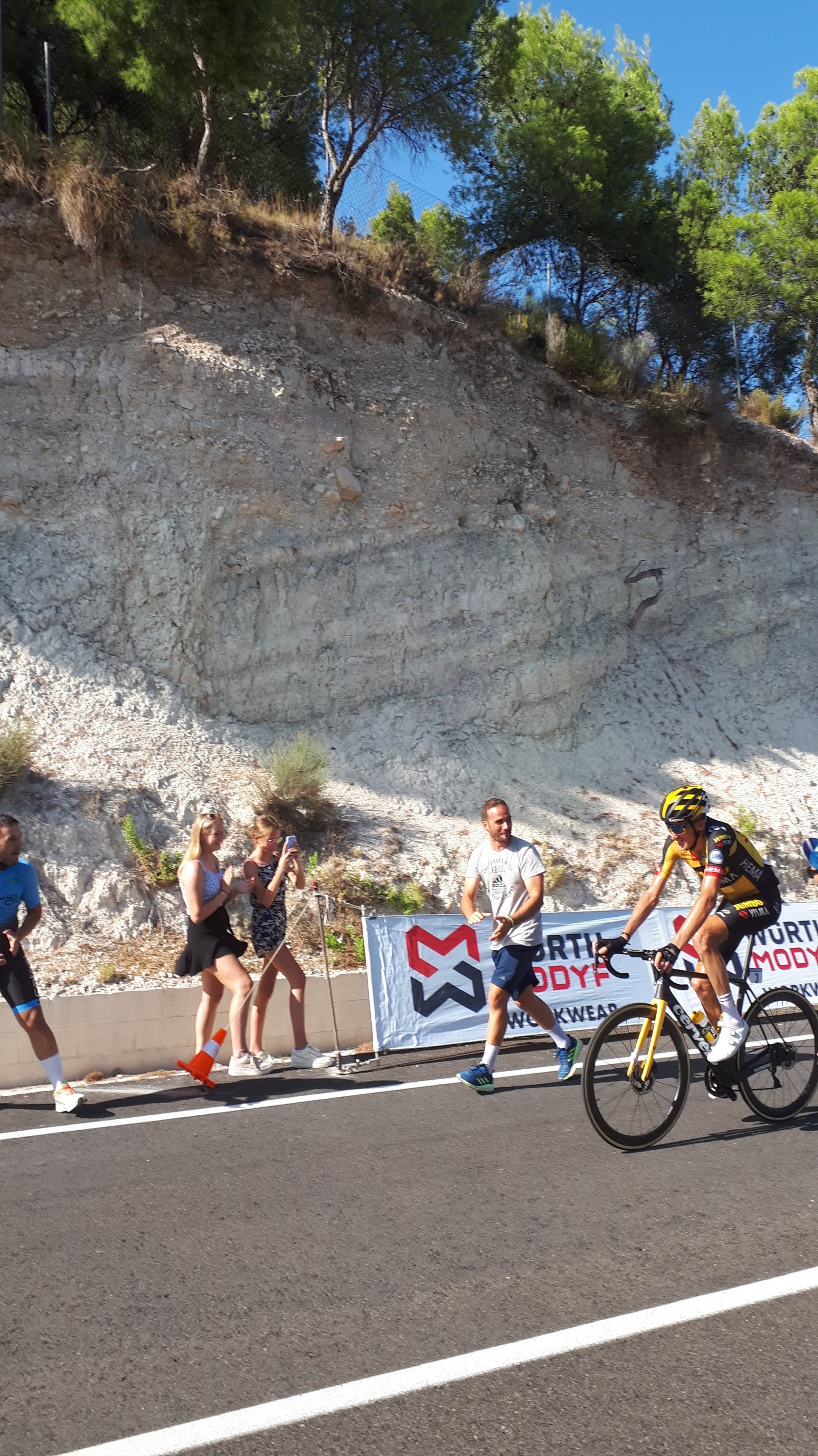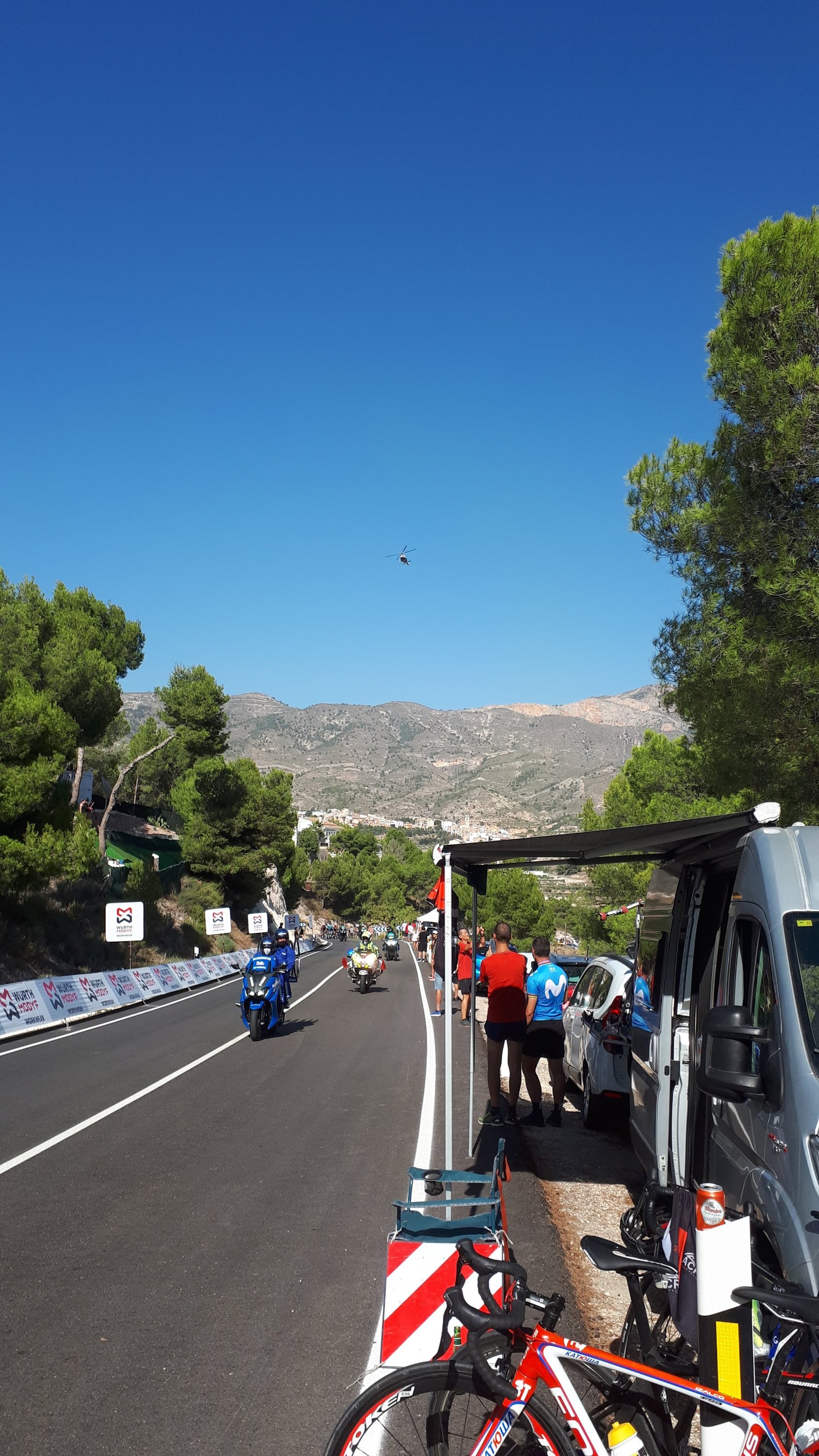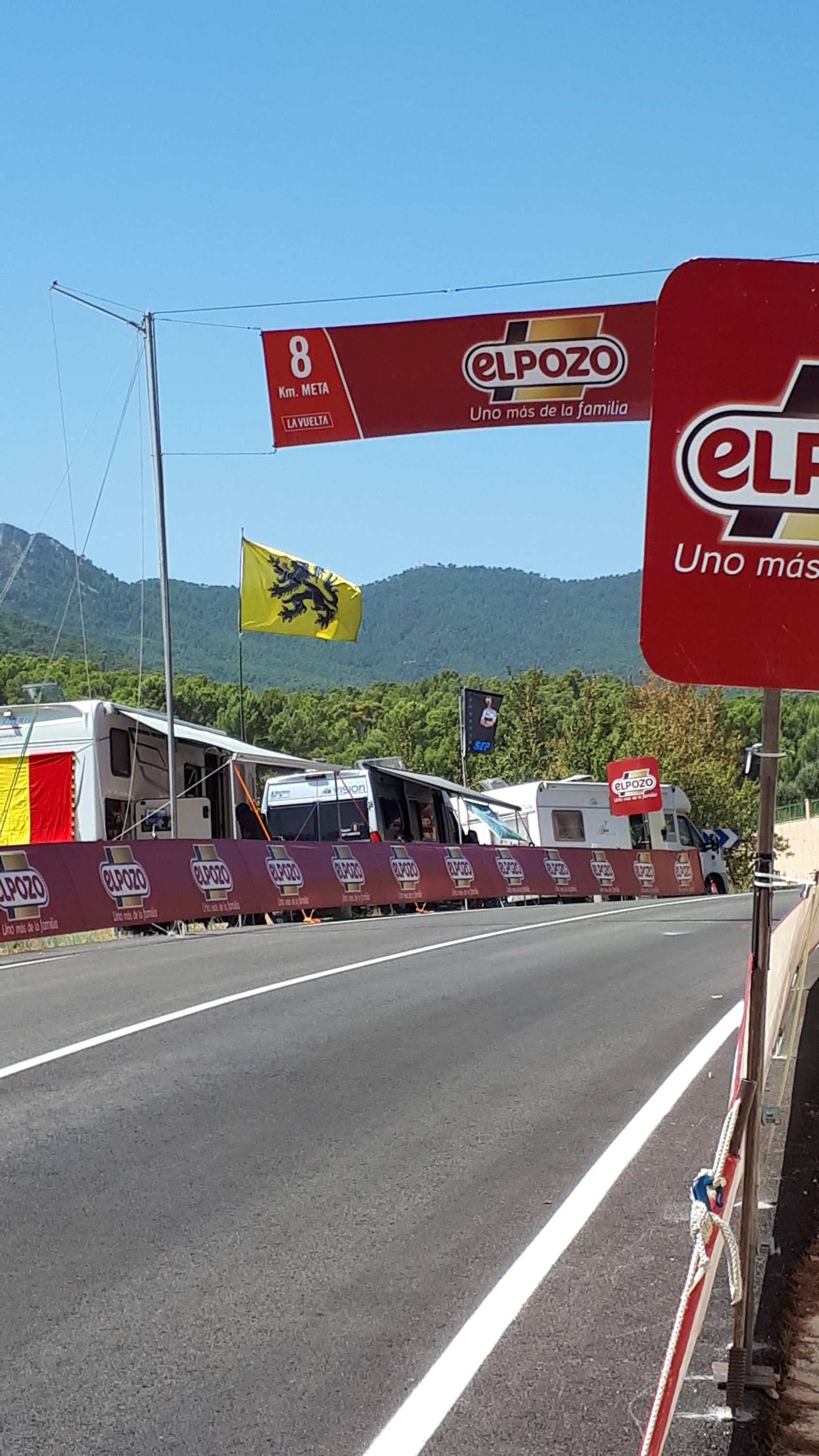 Dus zoals jullie kunnen lezen zijn we weer lekker op pad geweest de afgelopen tijd, en kun je, je hier ook prima in de extreme hitte vermaken. Maar we zijn wel blij dat het nu weer rond een aangename 30 graden is. En dat was maar goed ook want vorige week vrijdag hadden we weer zo’n leuk uitje. Het bleek namelijk dat de ronde van Spanje de Vuelta heel erg in de buurt was. En nog wel een bergetappe werd er gereden, dus hadden wij het idee om dat te aanschouwen richting finish. Die zou namelijk zijn op het Balcon de Alicante. Echter vanwege de grote droogte werd er besloten hier geen publiek toe te laten. Dus gingen we opzoek naar een andere toffe plek in Tibi en die hebben we gevonden hoor! Een tof plekje met een boom voor de nodige schaduw en leuke Spaanse buren. Het was even wachten ( een uurtje of 4) maar met een koelbox met broodjes en drankjes , muziekje en goed gezelschap vlogen deze uren zo voorbij. En wat was het weer mega tof om al die renners voorbij te zien komen. Sommige al helemaal stuk maar met de aanmoediging langs de kant zag je soms toch een glimlach komen. Heb je de Vuelta op TV gevolgd en zag je in een split second Dennis staan, maar dacht je dat kan toch niet. Nou let me tell you hij was het echt hoor!