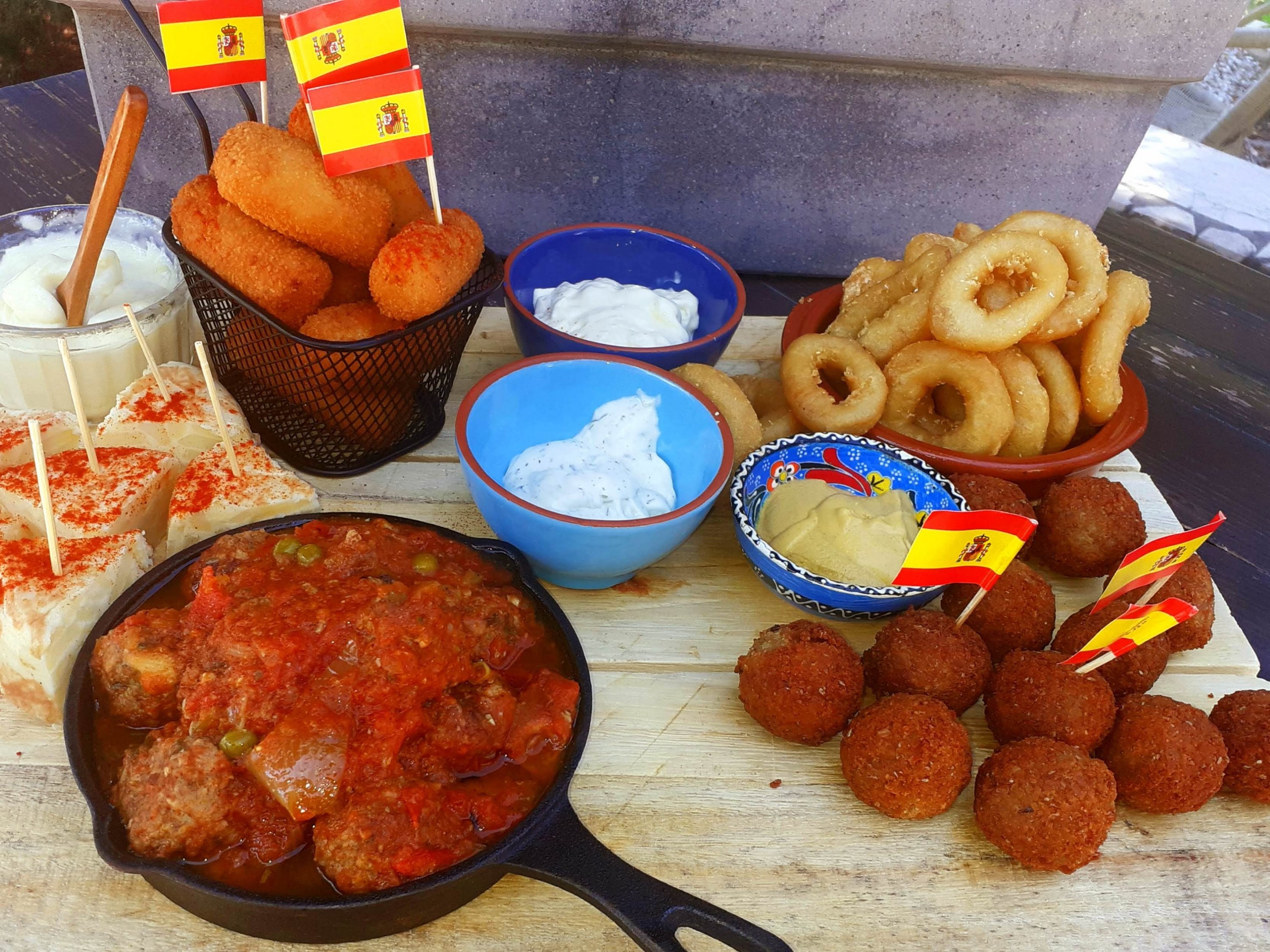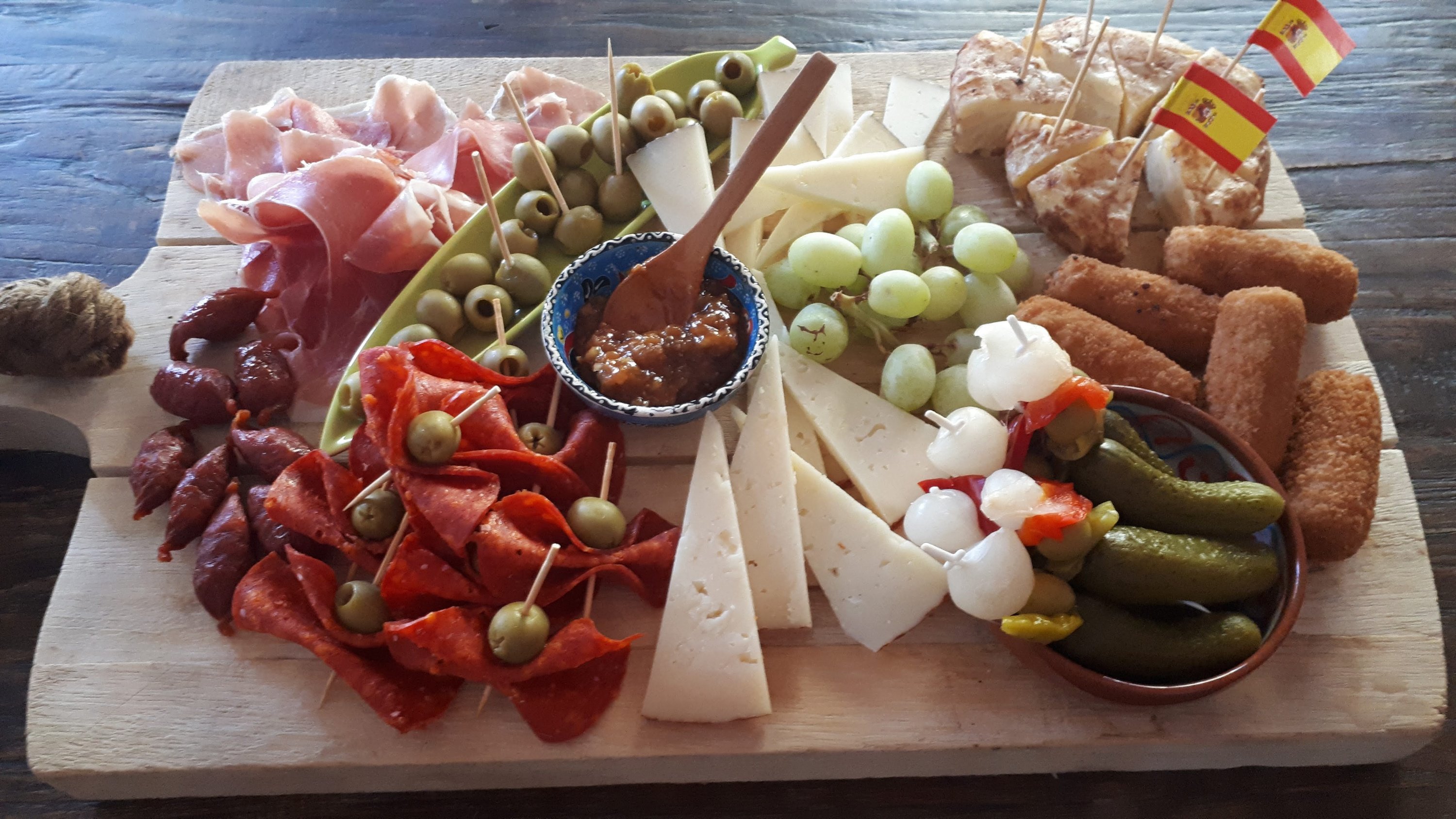 Ook hebben we heerlijk geborreld aan ons barretje en genoten van biertjes, wijntjes Gin tonic en sangria. Uiteraard mocht een lekkere plank vol hapjes niet ontbreken, van Spaanse ham en kaas, albondigas tot de oer-Hollandse bitterbal aan toe.