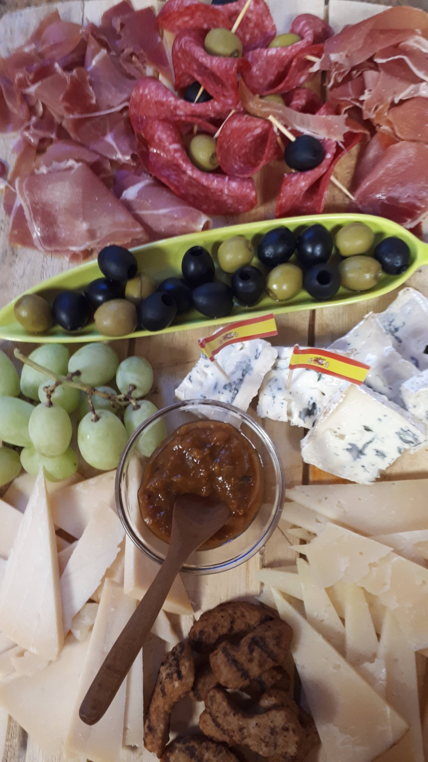 Het weer is trouwens nog steeds heerlijk hoor, we hebben echt niets te klagen. Oké het is oktober dus de avonden worden kouder, maar overdag? Gewoon stralende zonnige dagen waar we volop van genieten, en zelfs af en toe nog een verfrissende duik nemen omdat het anders echt niet uit te houden is. Gezellig met een muziekje op de achtergrond, koud drankje erbij en een gezellig plankje. Je weet wel van die leuke plankjes met van alles wat. Denk aan Spaanse ham en kazen, olijven, inktvisringen, balletjes gehakt, sardientjes. Die maken zo’n zwembaddag he-le-maal af kan ik je vertellen.
