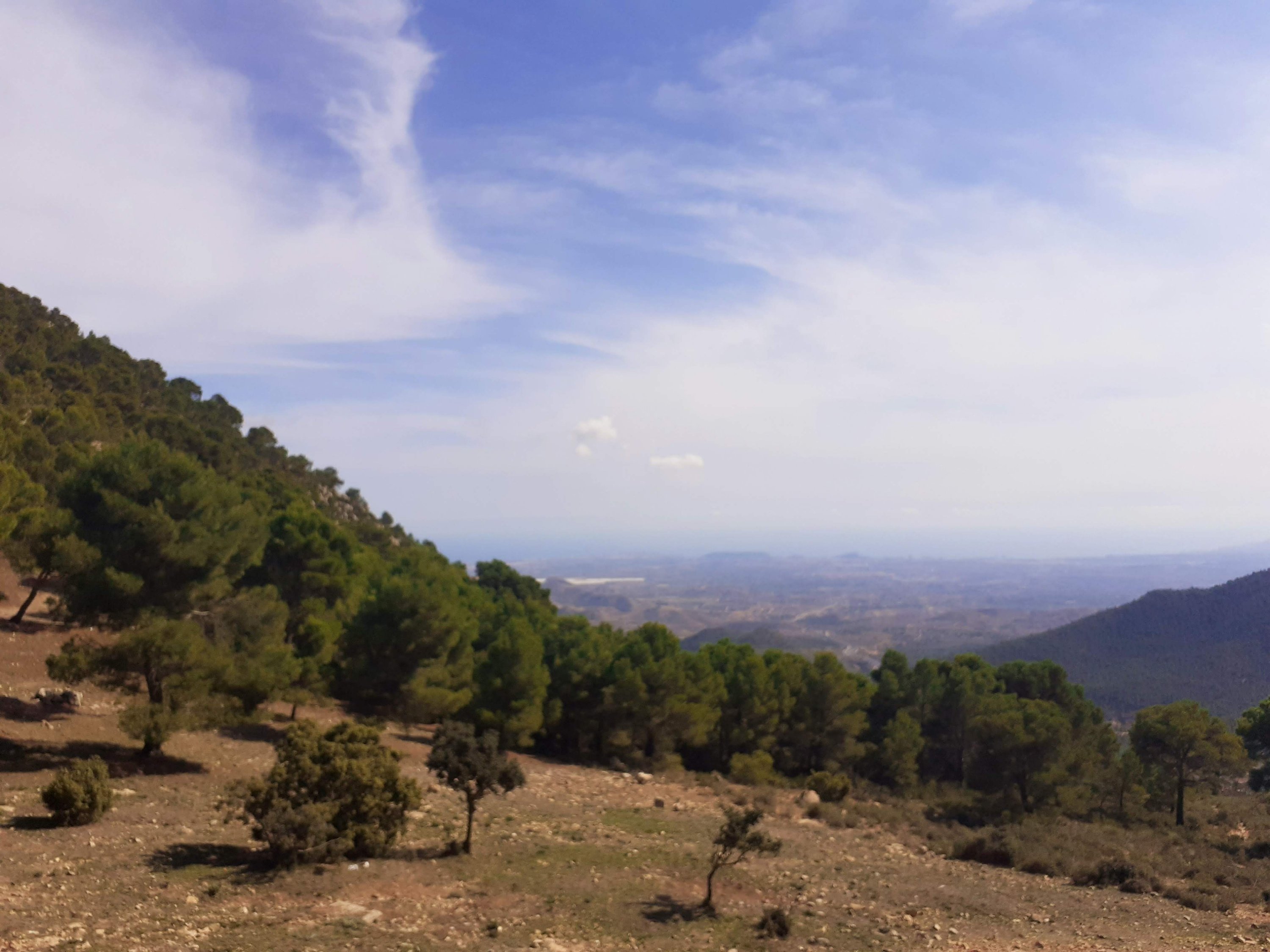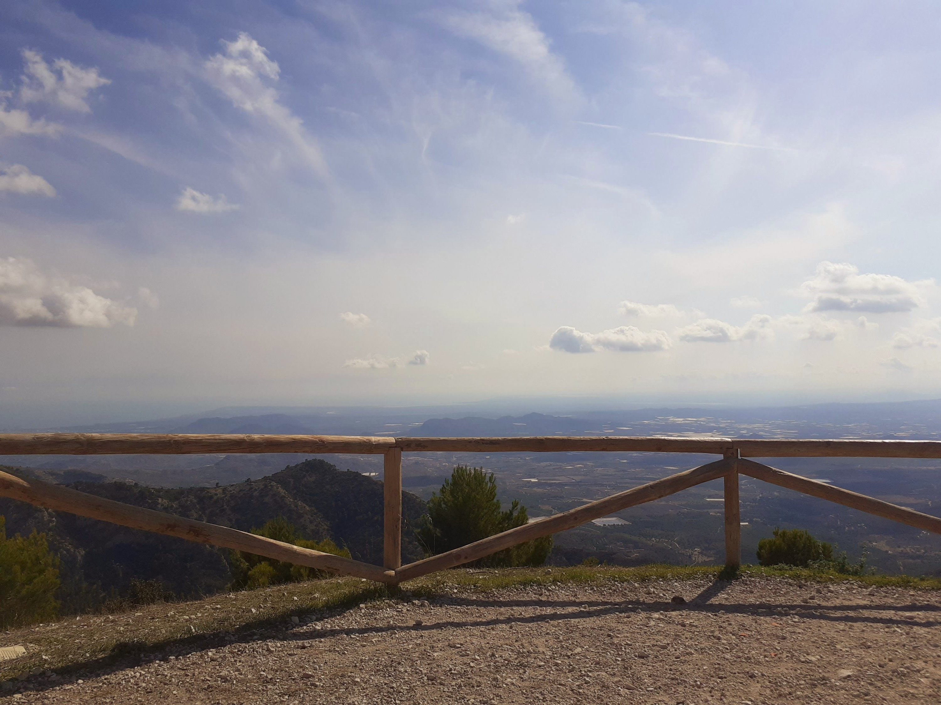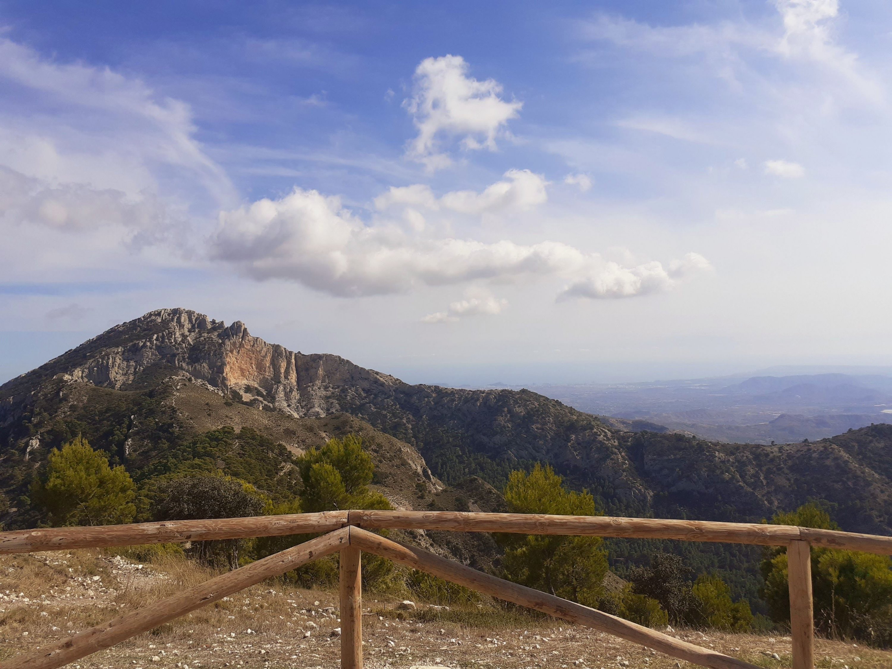 En van de week zijn we op pad geweest, naar een plek die al lang op mijn lijstje staat. Namelijk het balkon van Alicante, waar je waanzinnig uitzicht zou moeten hebben. Toen ik hoorde dat de Vuelta daar de finish had in augustus, dacht ik top dat gaan we doen. Helaas mocht daar geen publiek bij in verband met kans op brandgevaar vanwege de enorme droogte. Dus zijn we een aantal dagen geleden in de auto gestapt koelbox mee een gaan. Wat een rit joh! Echt de weg is goed geasfalteerd, wel smal en af en toe goede haarspeldbochten en je gaat in rap tempo omhoog. Onderweg hebben we af en toe gestopt, want dan is het uitzicht al adembenemend. Eenmaal de top bereikt heb je een goede parkeerplaats, verschillende picknicktafels en een plateau welke je waanzinnig uitzicht biedt. Ben je dit van plan, ga op een heldere dag,anders loop je zo met je hoofd in de wolken. Vanaf deze plek zou je ook te voet nog hoger kunnen. Deze keer hebben wij dat niet gedaan maar staat wel voor een volgende keer in de planning.