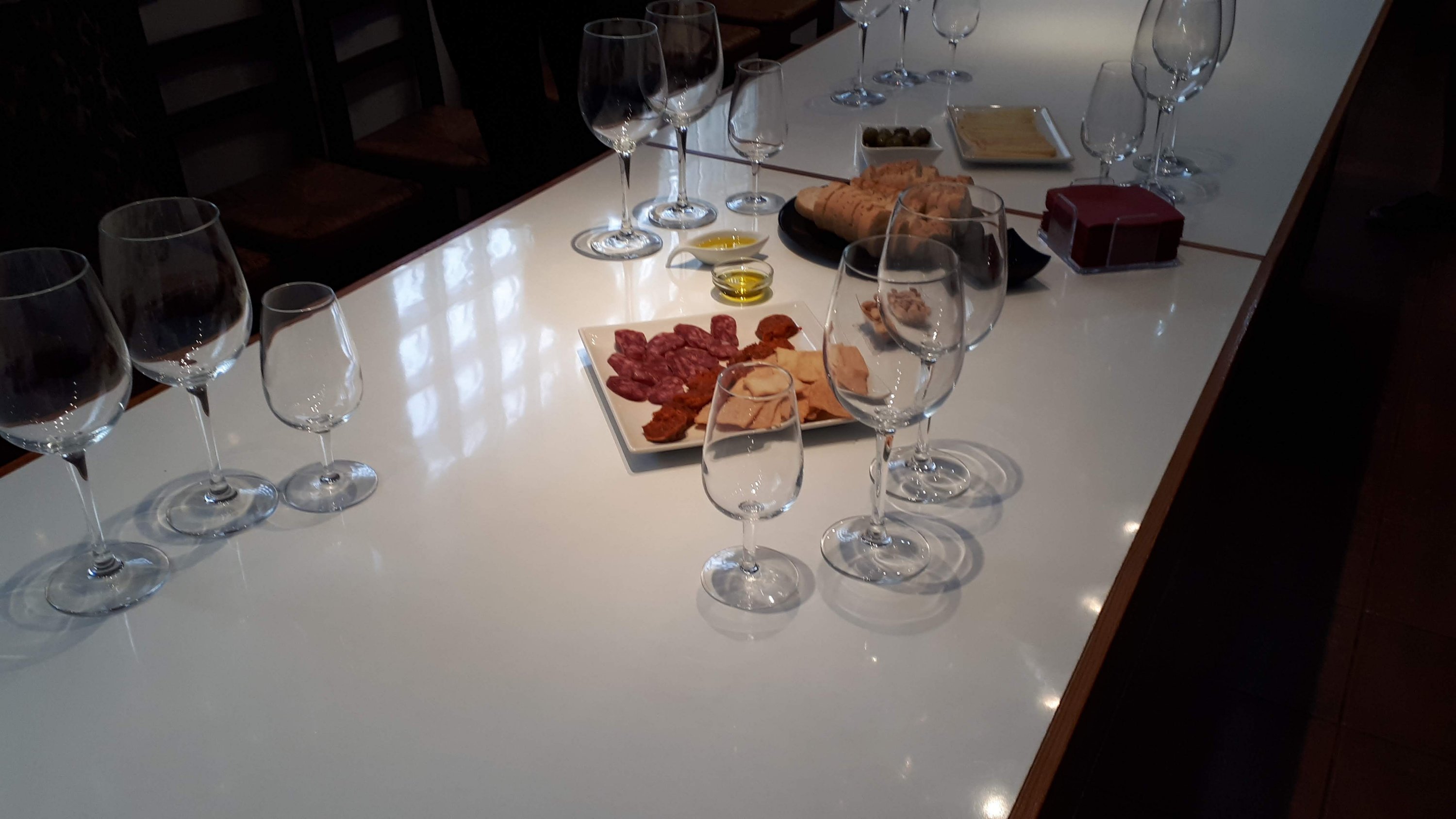 En inderdaad zodra je bij de lopende band aan komt waar de botteling plaats vind en de etikering zie je dat het inderdaad goed komt. Dus met een gerust hart kan je dan de proefruimte betreden. Waar de olijfolie, brood en kazen en vleeswaren al staan te wachten, samen met de lege glazen die staan te poppelen om gevuld te worden. De proeverij vind ik hier echt top! Want zelfs de Fondillón wordt geschonken, niet de goedkoopste maar wel 1 van mijn favorieten. Heerlijk met wat kaas of wat zoets. Maar ook is het geen probleem om een extra fles open te maken die niet standaard in de proeverij zit. En Ana is echt een topper die vol passie over haar werk verteld en je graag kennis laat maken met de wijnen die zij produceren. Leert je hoe je moet ruiken, wil weten wat jij ruikt en proeft en wordt dol enthousiast als ze echte liefhebbers en wijnkenners over de vloer heeft. Uiteraard heeft de bodega ook een kleine winkel, zodat je niet met lege handen naar huis hoeft en dat heerlijke vakantiegevoel ook thuis nog even vast kan houden. En dat allemaal op slechts 20 minuutjes rijden van onze stek.