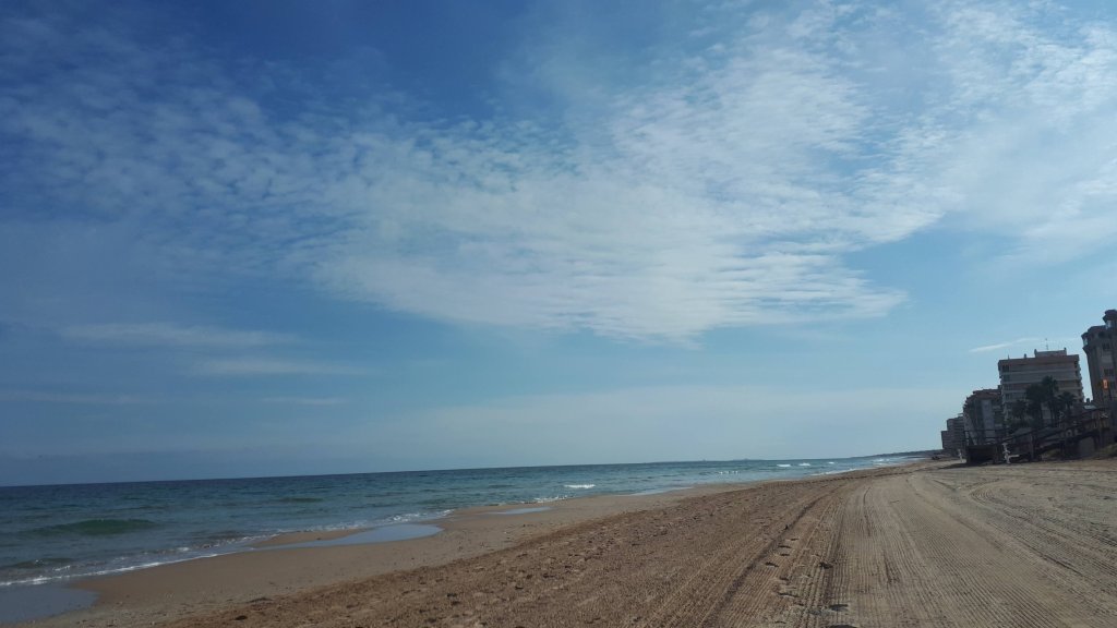 Omdat die zon maar bleef stralen en het dik 20 graden bleef, zijn we een paardagen later lekker weer richting strand geweest. nu de kant van El Altet op. Waar onze lievelings baai in El Campello uit rotsen en grind bestaat, vind je in El Altet gewoon een heerlijk zandstrand.