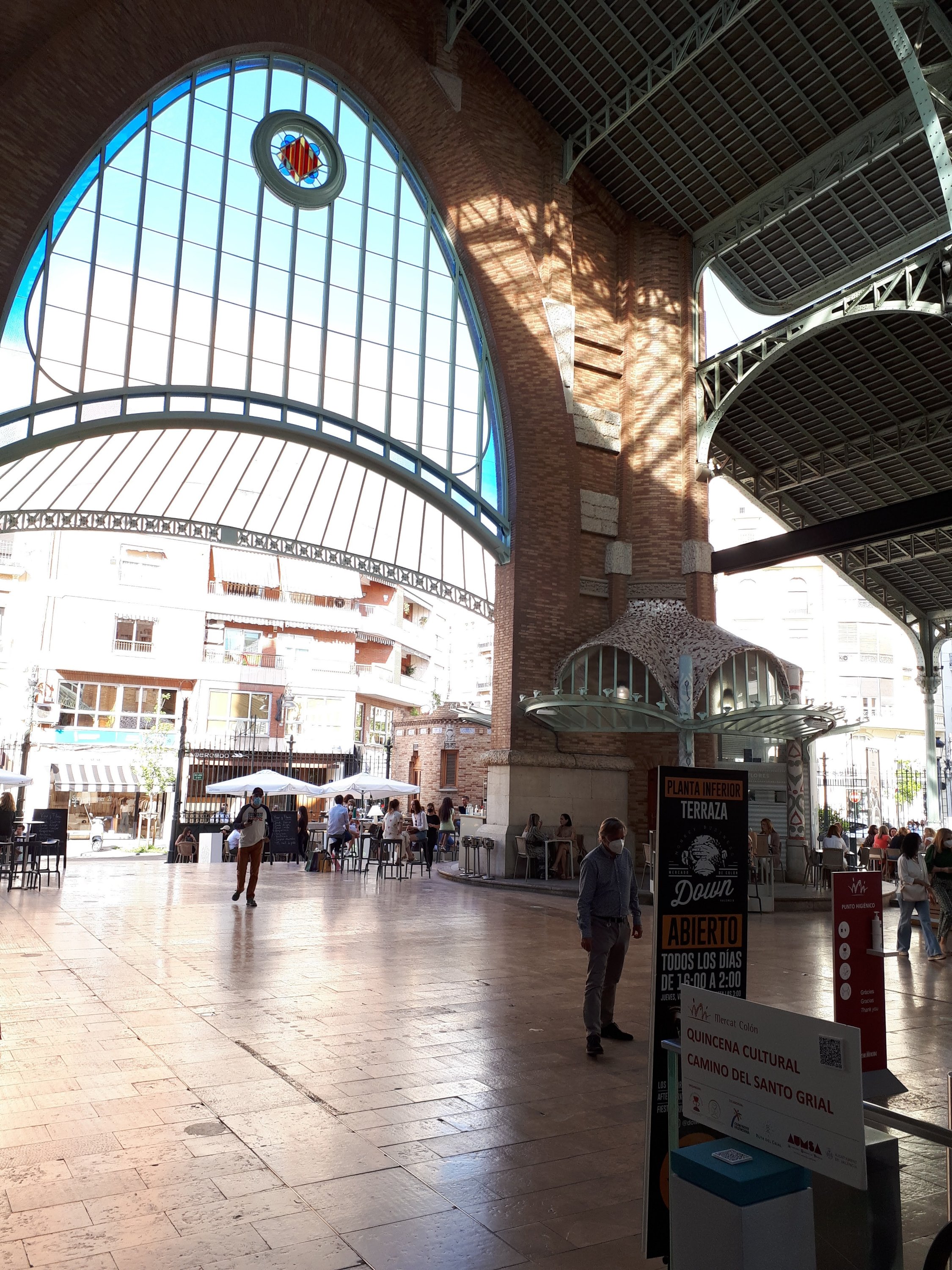 Wat ook zeker de moeite waard is, ja we blijven even hangen in het thema eten en drinken is de mercado de Colon, net even buiten het centrum. Vroeger was dit net als de mercado central een markt waar voedingswaren werden aangeboden. Nadat de markt in verval was geraakt, is deze toffe plek toch weer in ere hersteld en nu the placet o be voor een kop koffie, lunch of een Gin Tonic. Neem van mij aan dat het een levendige plek is waar je rustig uren door kunt brengen met mensen kijken, Heerlijke hobby toch? Maar buiten alle bezoekers is het pand zelf ook de moeite waard om te bekijken. Denk aan hoge plafonds, mozaïek en weet jij het symbool van Valencia te spotten? De sinaasappeltjes? Ga je lopend vanuit het oude stadscentrum richting deze markt? Dan bof je want dan kan je meteen even de Zara checken en de Corte Ingles onveilig maken, die liggen dan namelijk toch op de route 😉. En uiteaard even een stop bij de Ale Hop er valt altijd wel iets te kopen wat je niet nodig hebt toch?