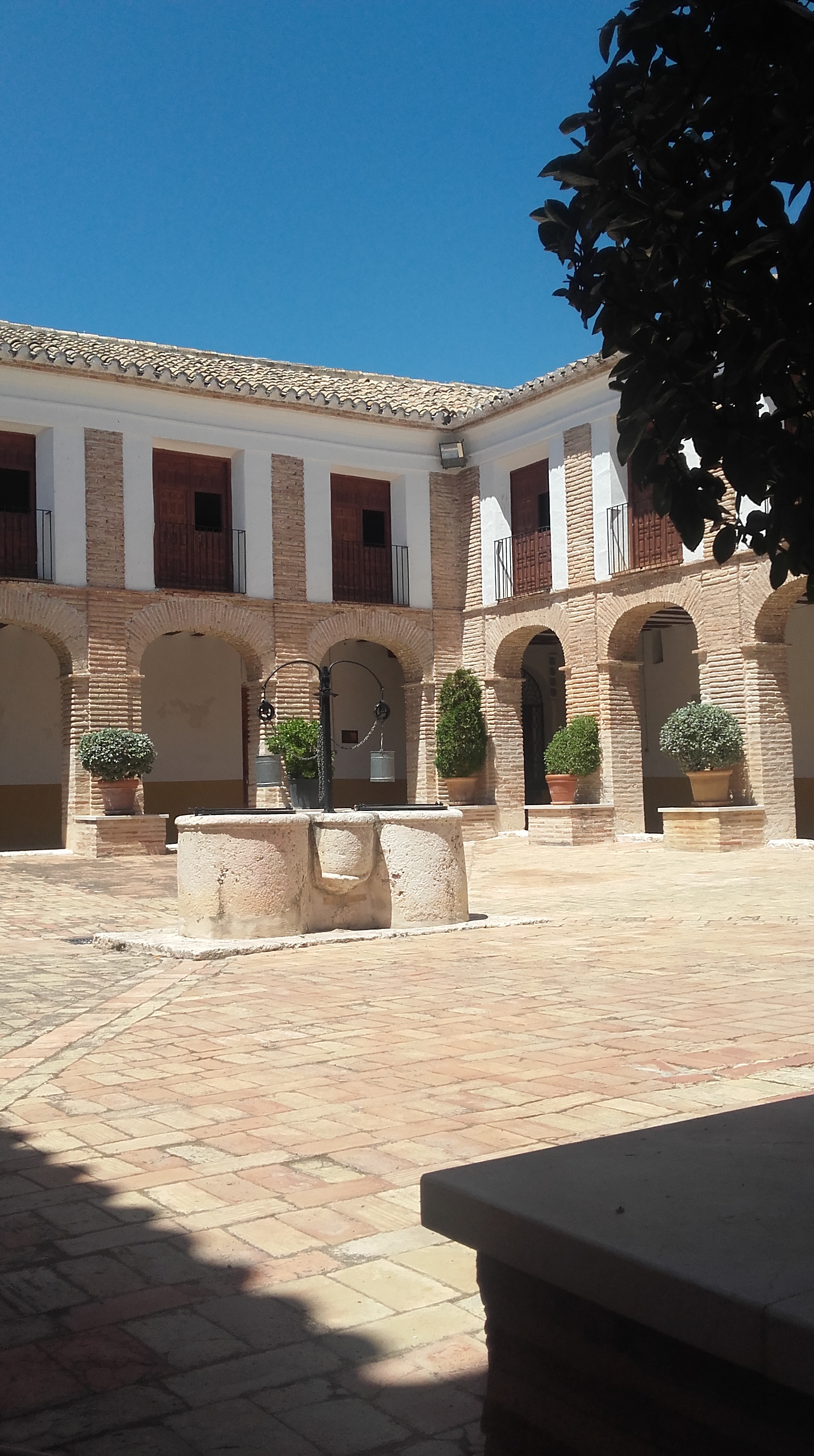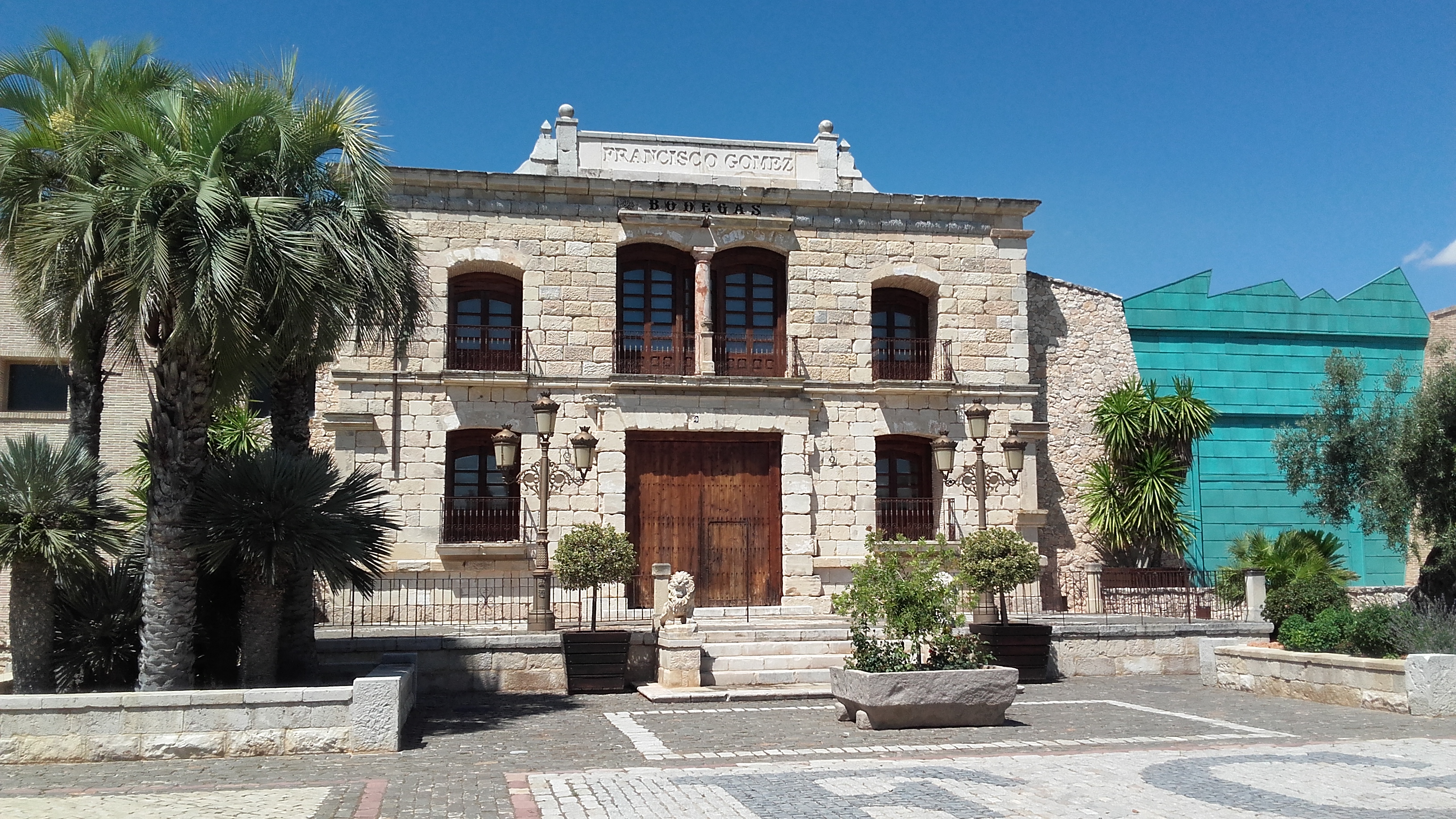 Een van de mooiste in de omgeving is toch wel de bodega van Francisco Gomez, misschien heb je die afgelopen jaar voorbij zien komen in het programma gemaakt door Ilja Gort. De locatie is echt prachtig, gewoon hoe je, je het helemaal voorstelt. Wijds met alleen maar druivenranken om je heen, een heuse oprijlaan met oleanders en rozen, een prachtig aangelegde tuin. Echt alles ziet er uit om door een ringentje te halen. Er is zelfs een kapel aanwezig waar men kan trouwen, en ik snap best dat daar voor gekozen wordt, want je waant je even in een hele andere wereld.