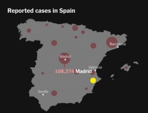 We hebben niet alleen vol verbazing naar de goocheltrucs van Justin gekeken, maar ook naar het onvoorstelbare reisadvies van de Nederlandse overheid. Voor ons totaal onverwacht kwam afgelopen week ’s middag rond 17.00 de mededeling dat buitenlandse zaken code oranje heeft afgegeven voor heel Spanje vanaf 00.00 die nacht. Wat in zou houden dat als je na 00.00 een voet op Nederlandse bodem zou zetten 10 dagen in quarantaine zou moeten. Er wordt meer en meer getest in Spanje en daar komen aardig wat positief geteste personen uit, mensen die over het algemeen weinig tot geen klachten hebben en het aantal ziekenhuisopnames is nog steeds heel laag. Het overgrote deel van deze positief geteste mensen bevinden zich in Madrid, Barcelona en een deel van Baskenland . En uiteraard op nog wat meerdere plekken in Spanje zijn wat plekken met meerdere positief geteste mensen te vinden. Maar het overgrote deel van dit land heeft weinig tot geen positief geteste mensen, zoals je kan zien op onderstaande kaart van het land (gele stip is het gebied waar wij ons bevinden). Zo ook het gebied waar wij ons in bevinden, afgelopen week kwam er weer een update vanuit het ziekenhuis in Elda waar wij onder vallen (het ziekenhuis voor een gebied van 200.000 inwoners), daar zijn nu al bijna 3 maanden geen patiënten aanwezig met Covid-19. Ook in Sax zijn er de afgelopen twee weken geen nieuwe besmettingen bijgekomen en ziet de gehele Communidad Valencia er goed uit. De rondom stad Valencia ligt het positief geteste mensen wat hoger, maar nog steeds vele malen lager per 100.000 inwoners dan bijvoorbeeld Rotterdam of Amsterdam. Deze cijfers zijn ook voorgelegd aan de Nederlandse ambassade in Madrid, waar men werd doorverwezen naar het RIVM, die op zijn beurt weer wees naar het ministerie van Buitenlandse zaken om vanuit daar weer doorverwezen te worden naar het RIVM. Hopelijk wordt code oranje snel weer opgeheven of in ieder geval aangepast per regio zoals eerder het geval was.